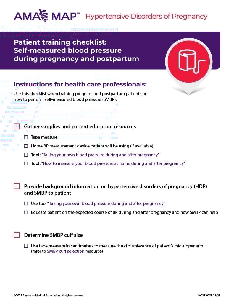Patient Training Checklist: Self-Measured Blood Pressure During Pregnancy and Postpartum